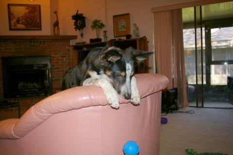 Now that he’s older, wiser, and wilier, he’ll drop the ball at my feet, then race around to hide behind the armchair. A moment later, my little ambush predator’s head peeks up over the arm to see if the oblivious ball is coming. It’s so cute, I laugh and throw it for him, of course.