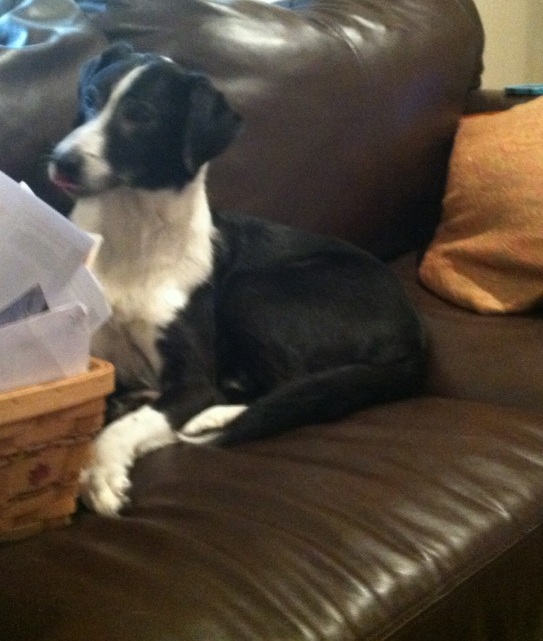It was now time to enter the house, I purposely kept the leash on Tillie so as to be able to get a hold of her should she try to escape. It was obvious from the minute that we stepped foot inside that Tillie had probably never seen the inside of a house, she immediately attempted to dash back out. I pulled her inside and closed the door. I switched from the long line to a 6ft lead; I would need to keep her with me in the house. If I allowed her to hide, that’s what she’d do, hide.Tillie3