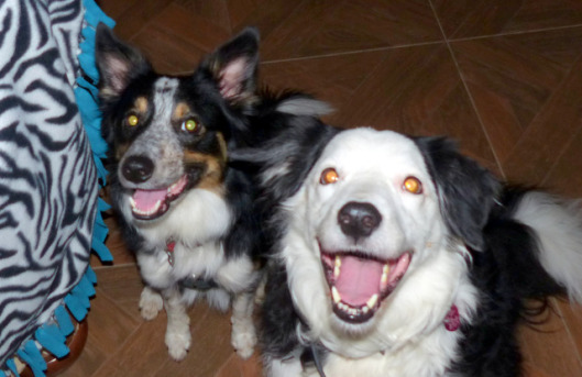 Someone’s at the door! China, Lady Di, and Ozzie. (Notice that China is also on guard duty. She’s what Gisele calls “a deafie.” She may be deaf, but it doesn’t stop her from being an awesome dog.)